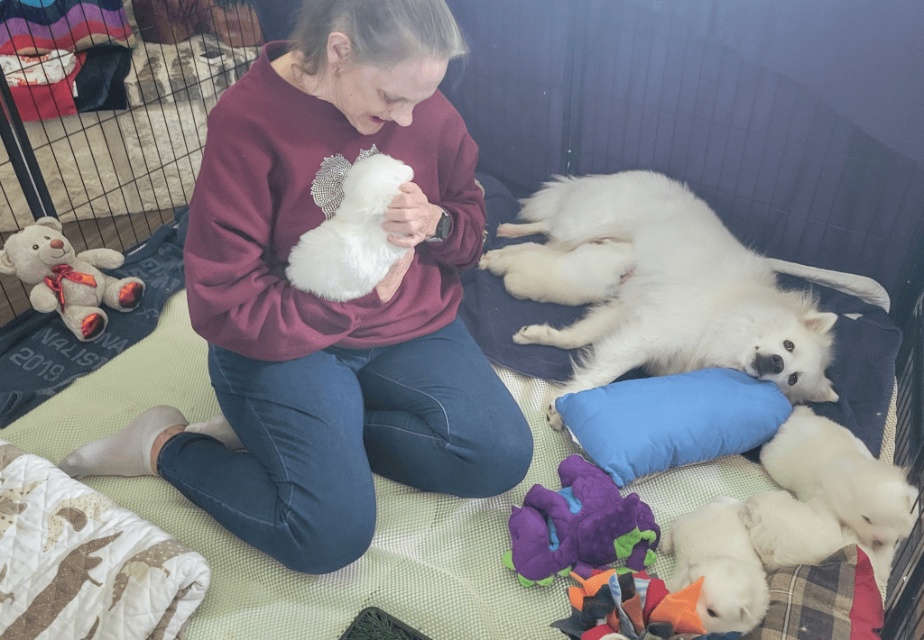 We love the American Eskimo Dog and strive to contribute to the preservation and Growth of the breed. Breeding is a lot of work, and of course, a lot of fun. The testing prior to and during pregnancy is expensive, but is critical for the very best outcomes. Females will have an ultrasound at around 4 weeks gestation to confirm pregnancy (and get a good guess at the number of puppies). They later will have an x-ray about 3-5 days before delivery to confirm the number of puppies to be delivered.
